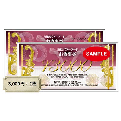 内容食事券(3,000円券×2枚) 計6,000円分※テイクアウトにもご利用いただけます。
